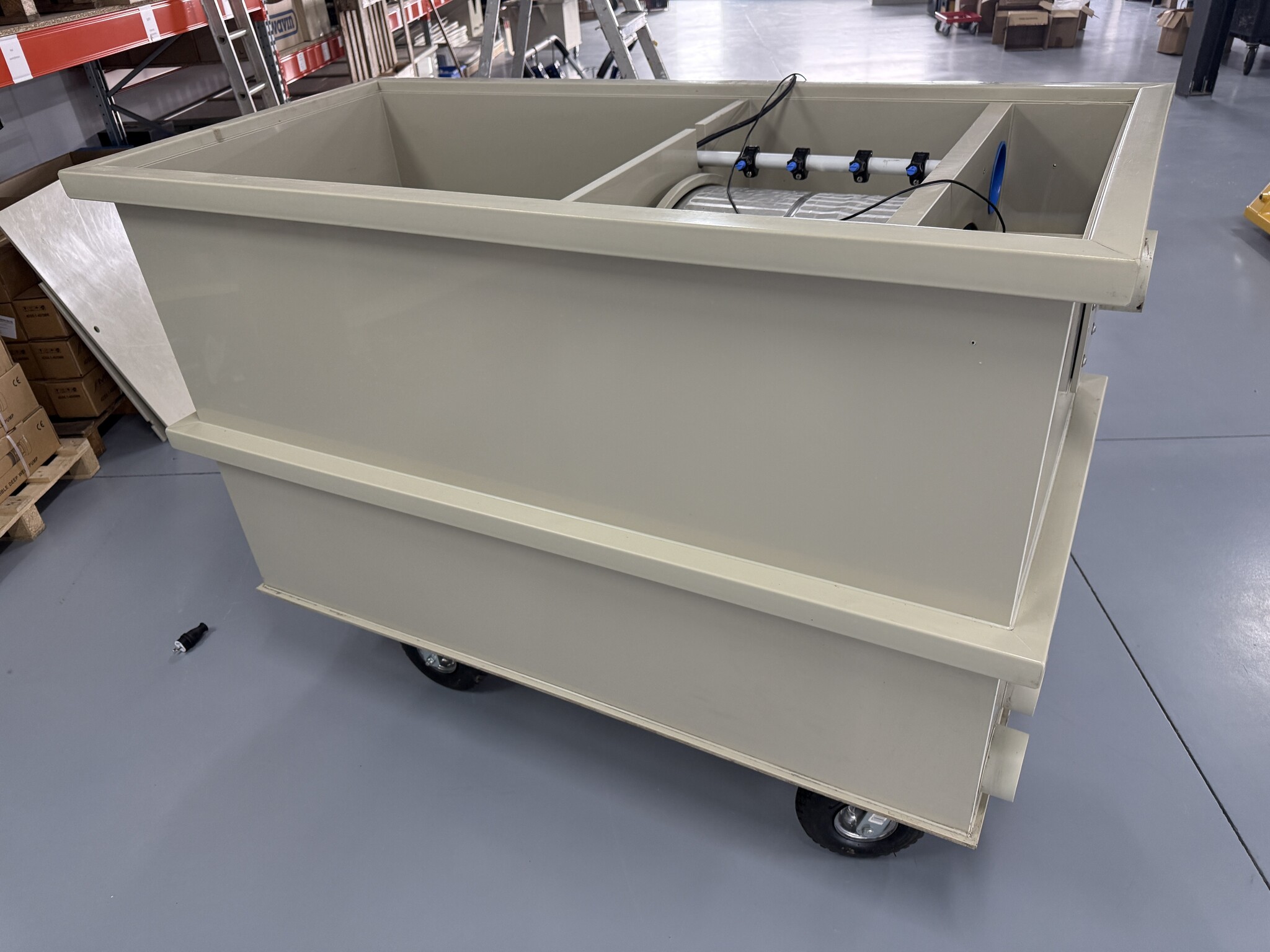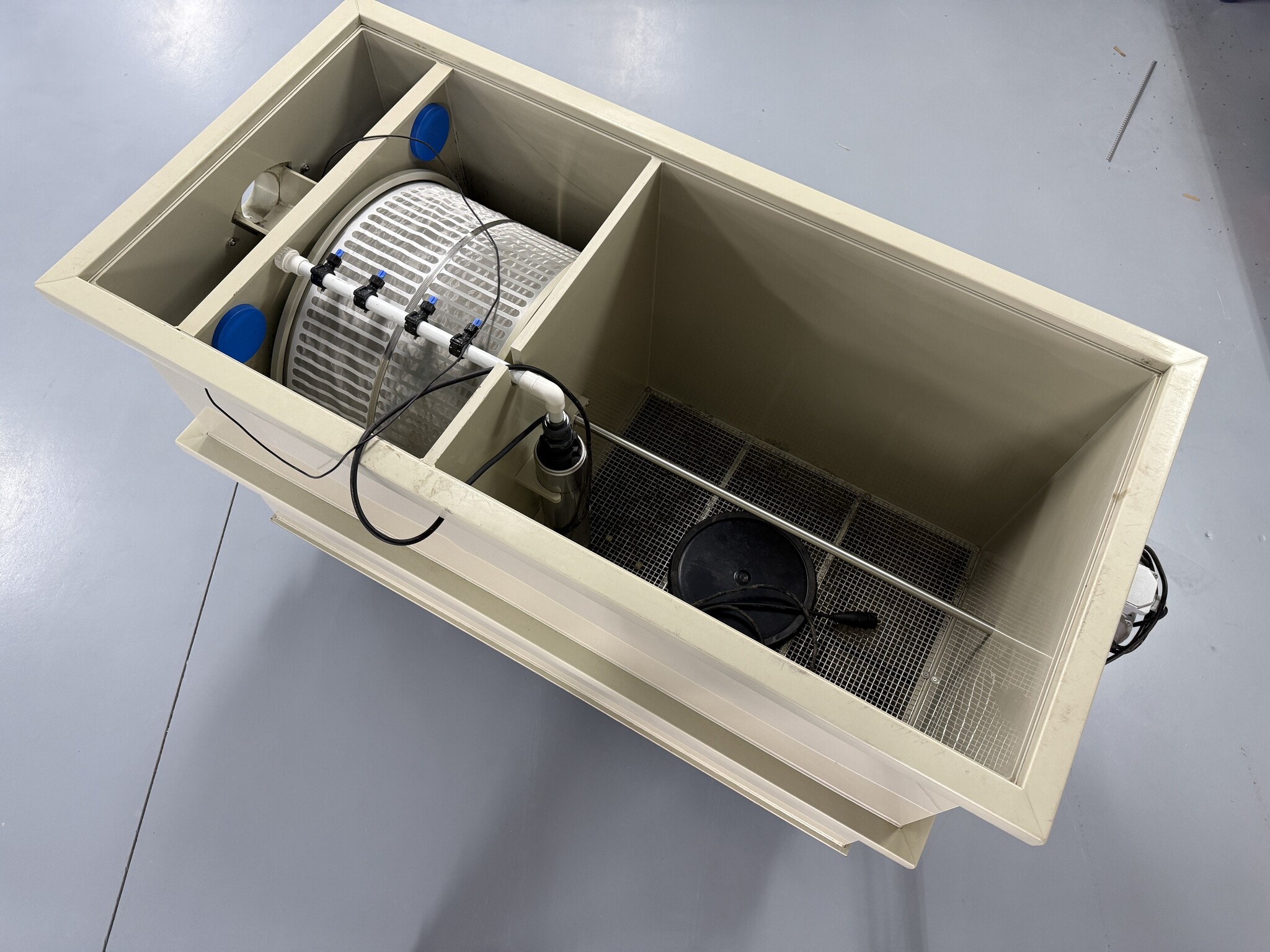 Standaard worden deze Biodrums geleverd met 4 x 110mm inlaten (deze is naar wens ook uit te breiden) en 2 x 110mm uitlaten. Zodat er gemakkelijk met bijvoorbeeld een airlift systeem of energie zuinige pompen kan worden gewerkt!