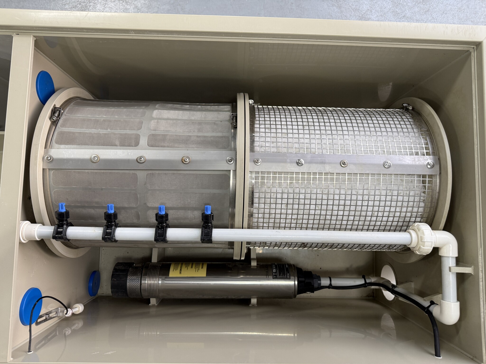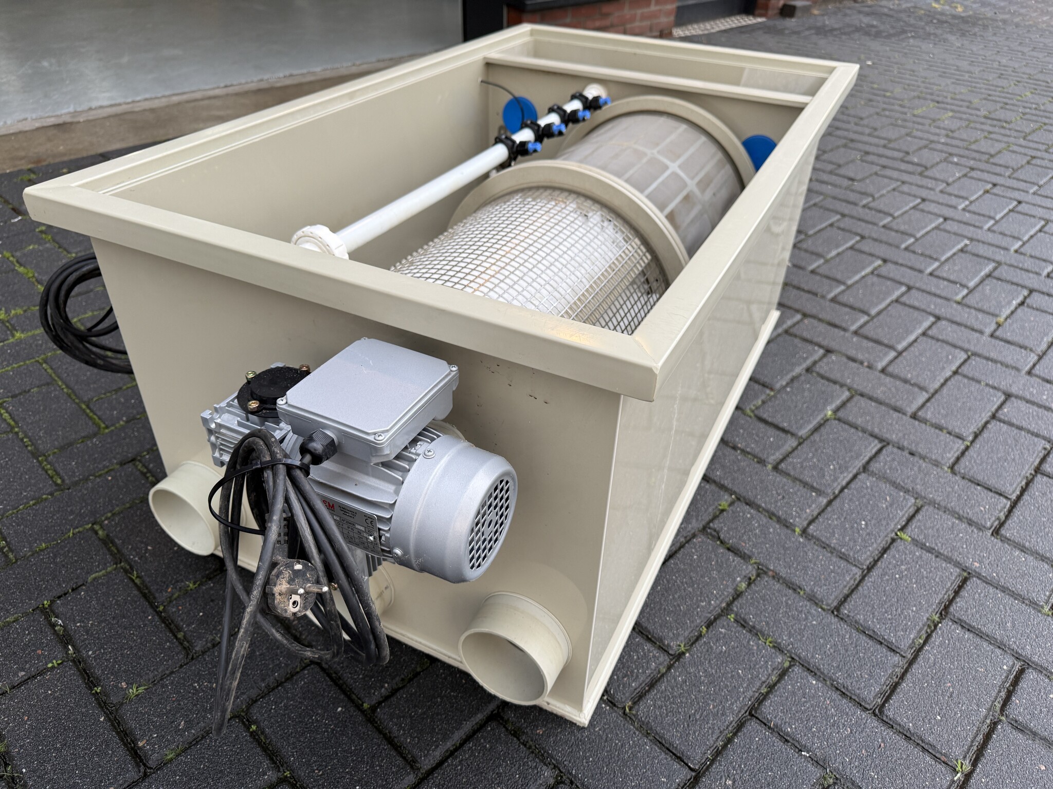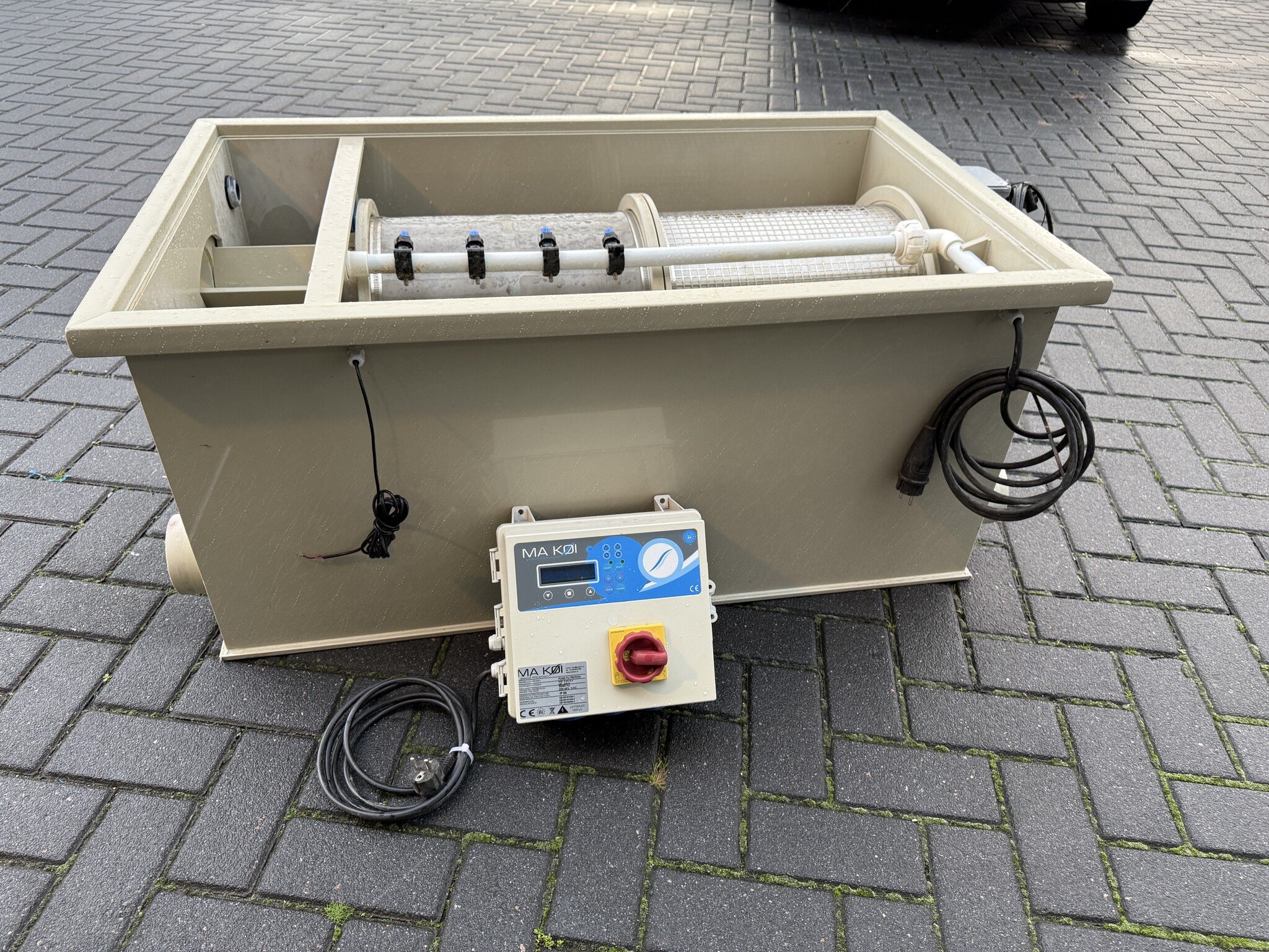 De Makoi BioDrum Rotator 20 heeft een capaciteit om 15-20m3 per uur te verpompen, en is geschikt voor koivijvers tot maximaal 20m3