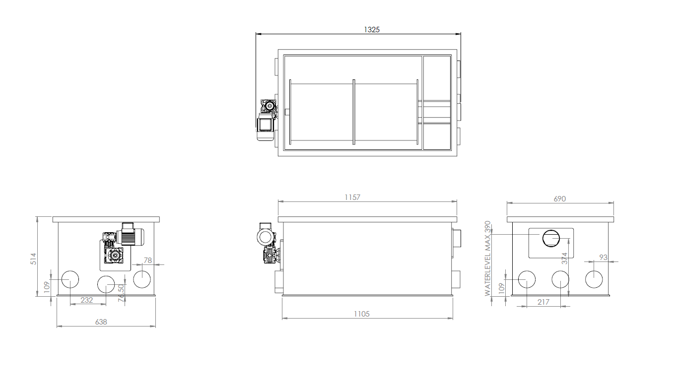 Uitwendig met motor: 1435x570x507mm ( l x b x h )