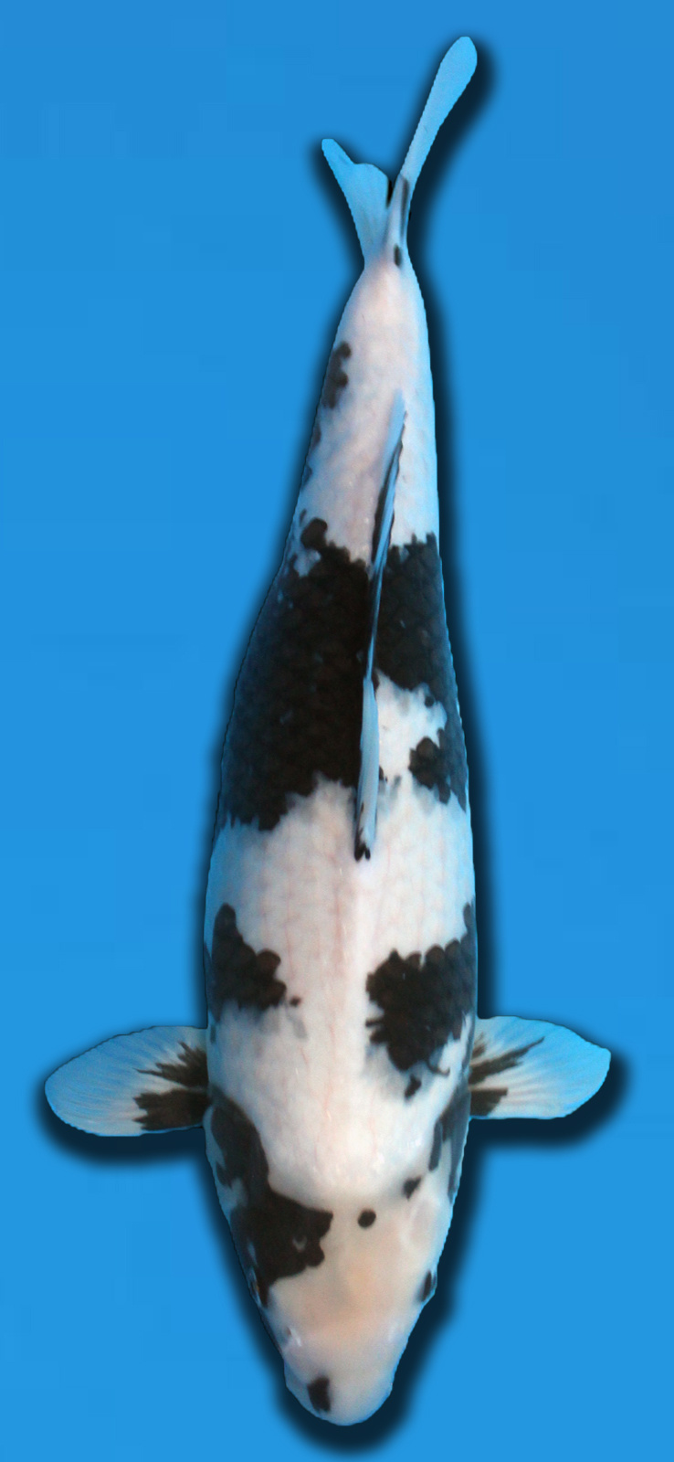 Een prachtige Shiro Utsuri van Omosako Koi Farm, dé specialist in deze variëteit.