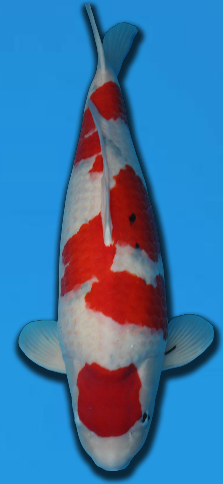 Een indrukwekkende Sanke van Tamaura Koi Farm, bekend om zijn zuivere huidkwaliteit en stabiele patronen.